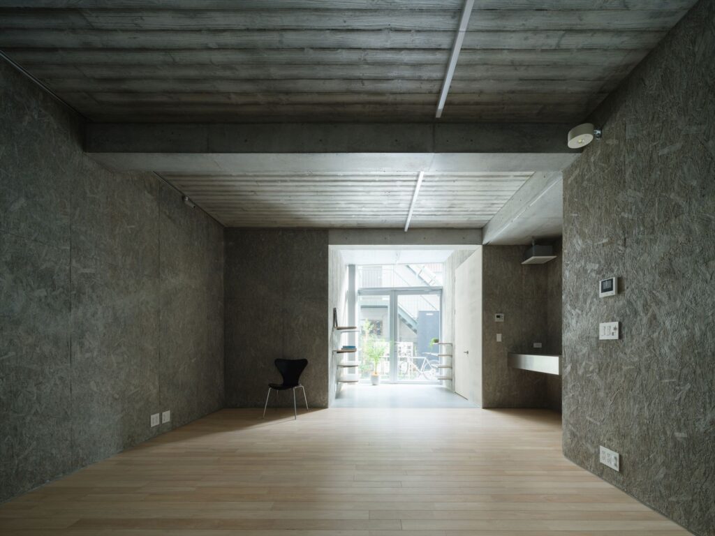 光をより美しく見せるために、素材感のあるコンクリートを採用して頂いています。こちらの部屋ではコンクリート型枠を3種類使い分けています。すごいこだわり!!