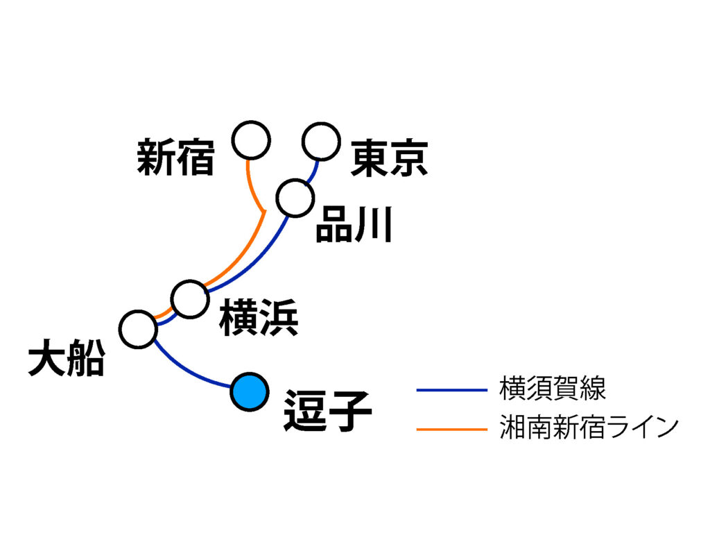 最寄り駅は横須賀線と湘南新宿ラインが乗り入れる JR「逗子」駅。